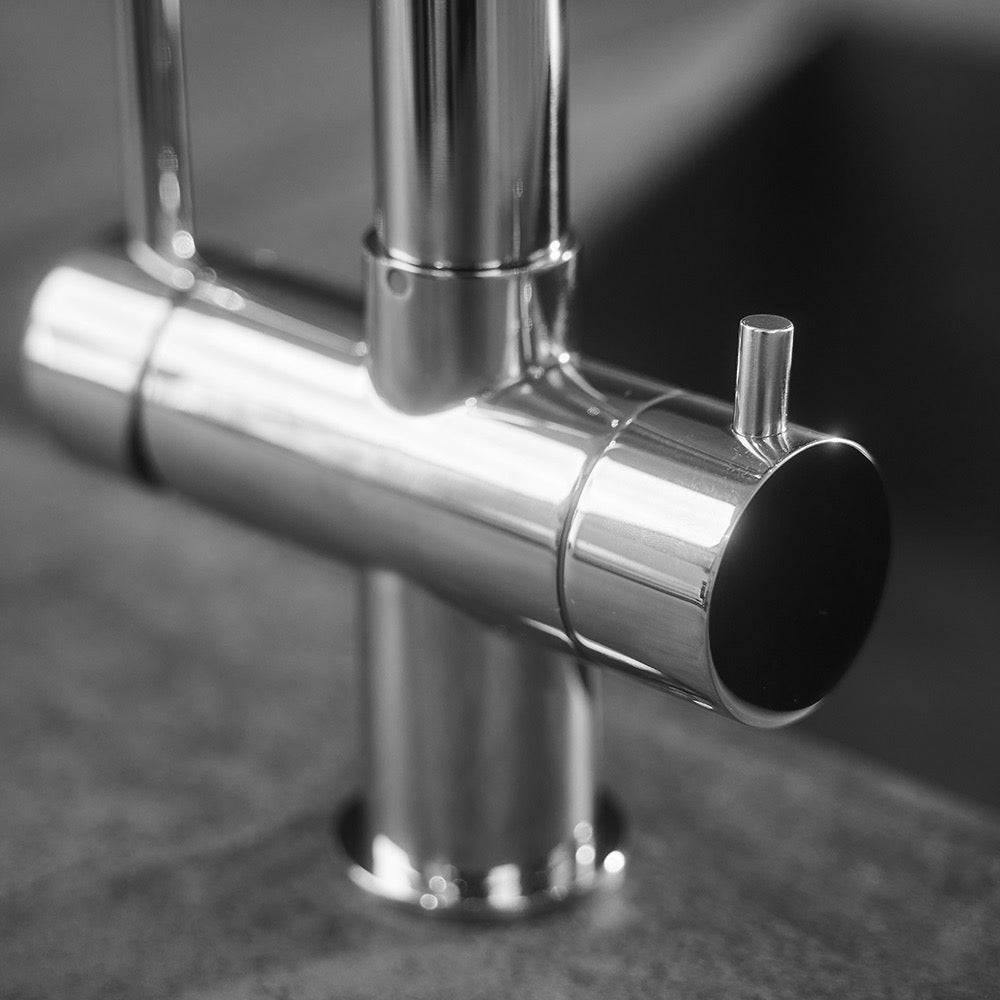 3 Way Kitchen Filter Tap in Solid STAINLESS STEEL, with 360° swivel spout and 2-jets removable Spray, Brushed / Stainless Steel Spring - Short version 45CM