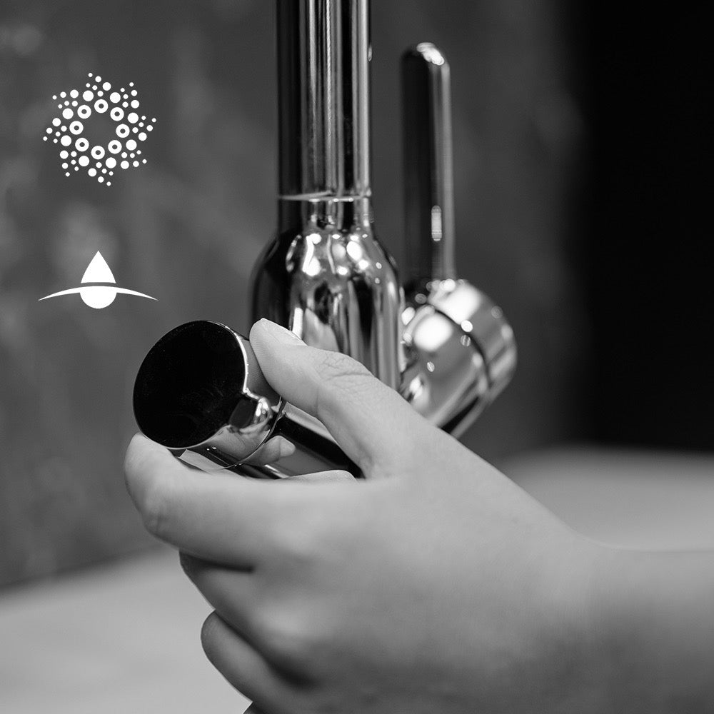 - Ceramic valve for separated filtered water control - Separated inner channel for filtered water.