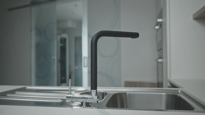 Under Window Kitchen Tap, folding spout to reach 4,5 cm, with 360° swivel L-Spout, Chrome / Black Quartz